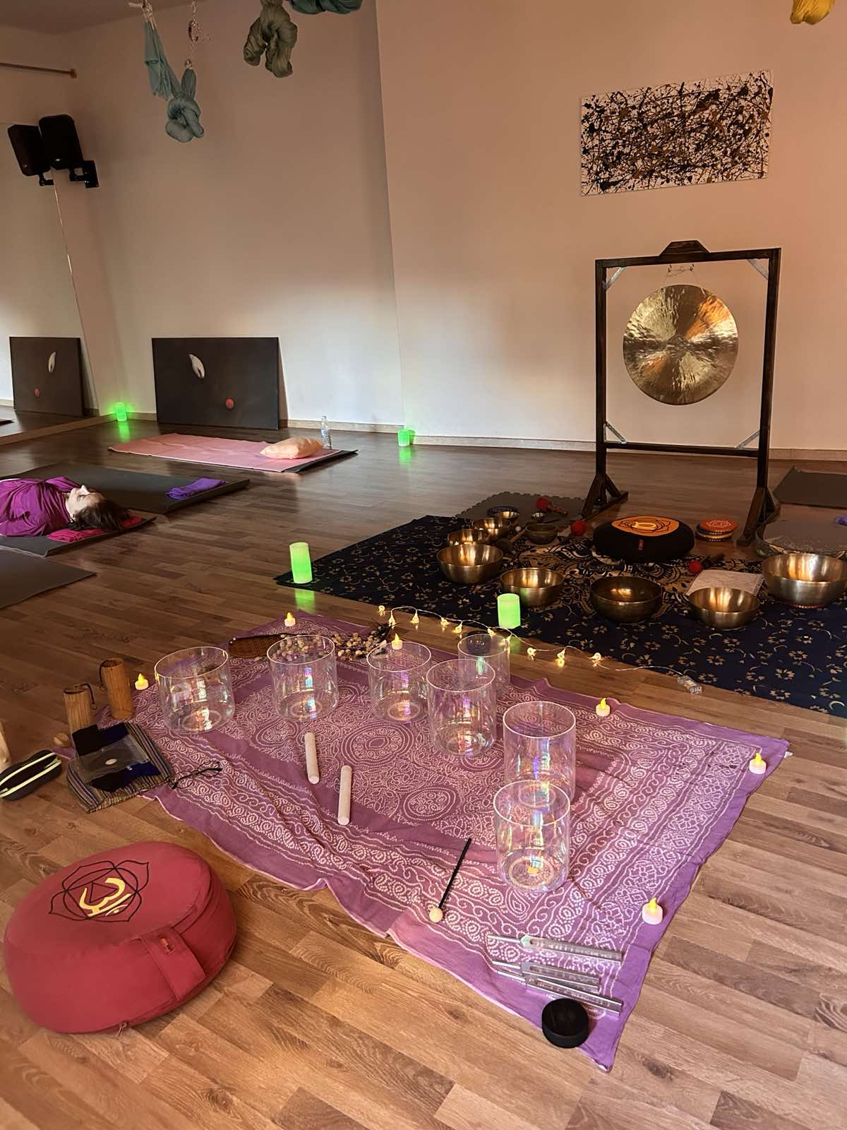 Το sound massage (ηχομασαζ) γίνεται με βάση τον ήχο και την δόνηση από τα singing bowls (ηχογαβάθες ) και του gong.